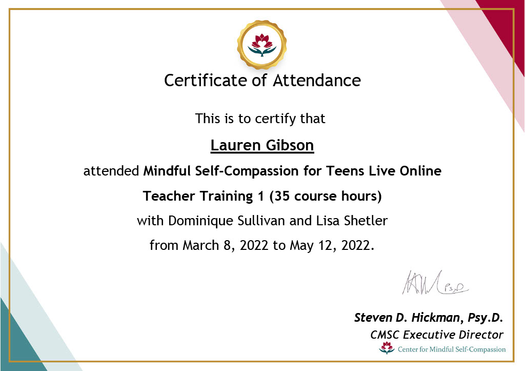 🌟 Mindful Self-Compassion for Teens Teacher: Adolescence can be a tumultuous journey, and I am one of the select few certified teachers of Mindful Self-Compassion for Teens in Australia. I am deeply committed to supporting our younger generation in building resilience, self-acceptance, and emotional well-being. Let’s empower our teens to navigate life’s challenges with grace and compassion.